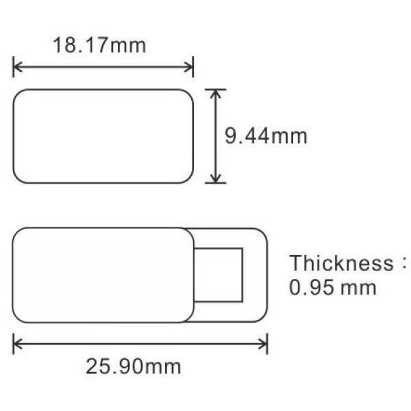 Productinformatie PP webcam cover met dubbelzijdige stickers voor bevestiging. Het schuifje gaat makkelijk open en dicht.