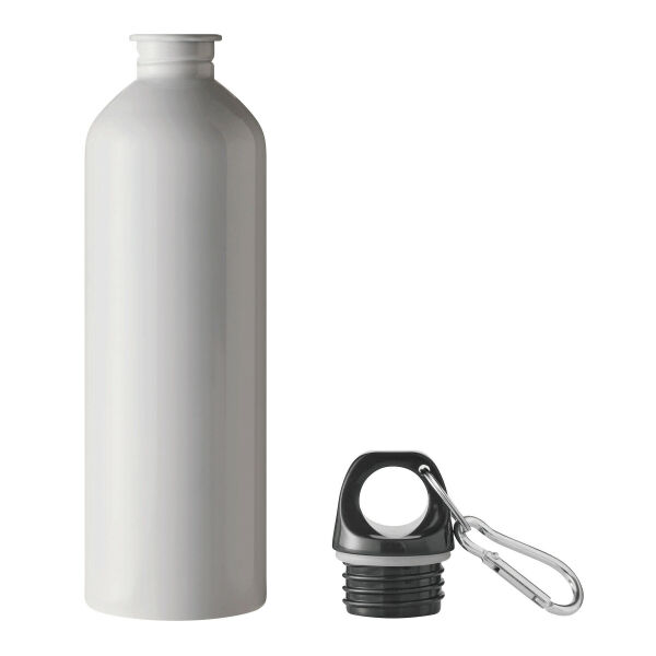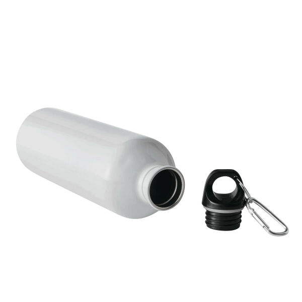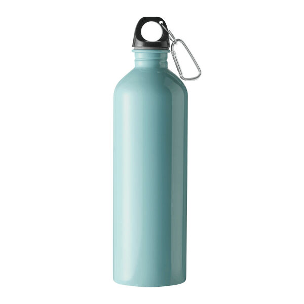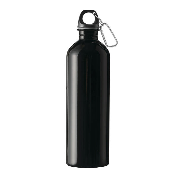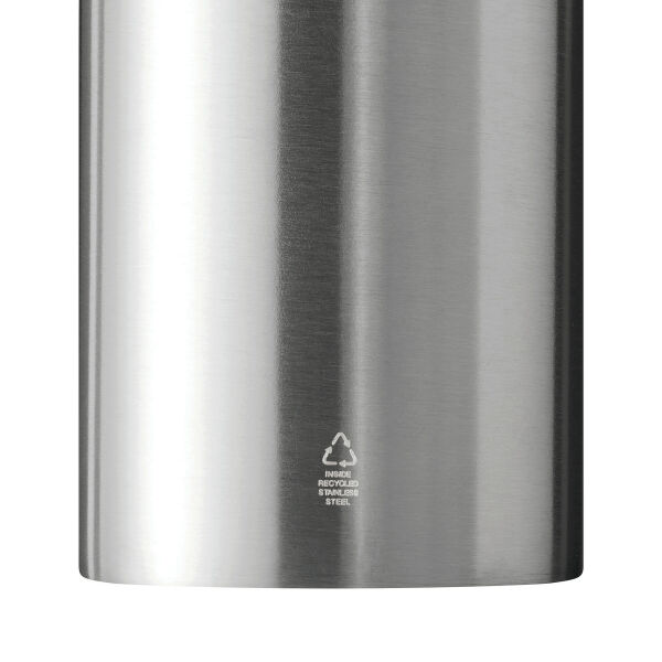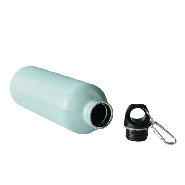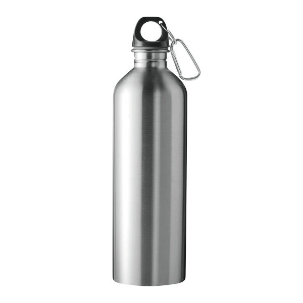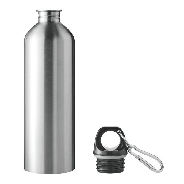 Drinkfles STEELTRANSIT, enkelwandig: van gerecycled roestvrij staal, zwarte kunststofdop met veilige schroefdop, siliconen afdichtring, sleutelring en karabijnhaak (de karabijn is NIET geschikt als beveiliging bij klimmen), inhoud ca. 750 ml