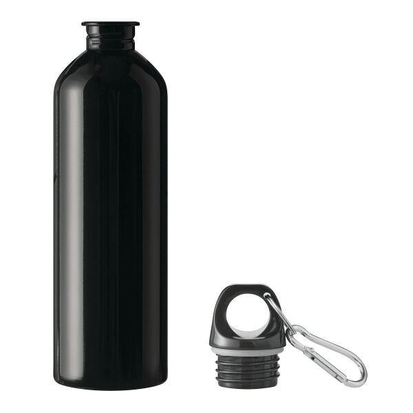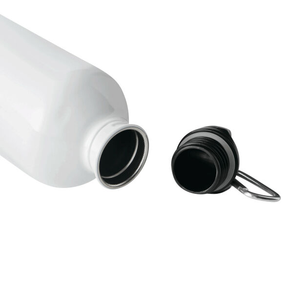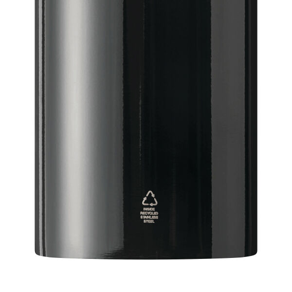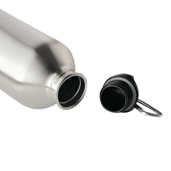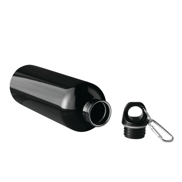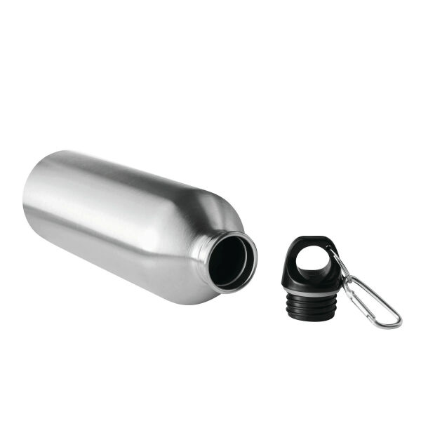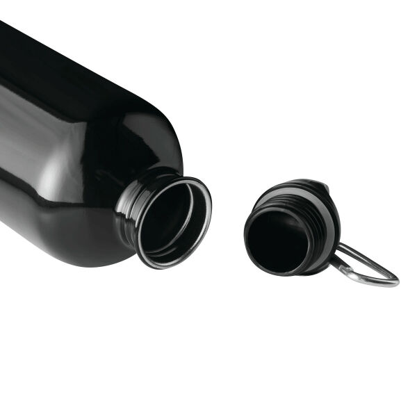 Drinkfles STEELTRANSIT, enkelwandig: van gerecycled roestvrij staal, zwarte kunststofdop met veilige schroefdop, siliconen afdichtring, sleutelring en…